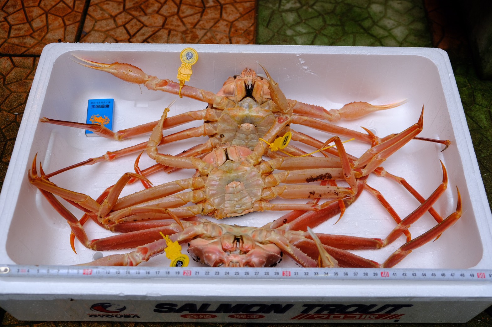 Bセット カニ3杯 (600g位のカニ、600g位のわけあ りのカニと300g位のカニ) 税込み10,000円 *わけありとは、カニの足が1本ないカニです。